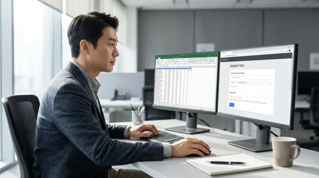 먼저 Ahrefs·Semrush 등 백링크 분석 도구를 통해 도메인별 스팸 점수를 확인합니다. 점수가 70% 이상이거나 외국어·무관 키워드 중심의 URL은 제거 대상으로 분류해요. 짧은 기간에 비정상적으로 급증한 링크도 자동 생성 가능성이 높습니다. 수집한 데이터는 엑셀로 정리해 분류하면 효율적으로 관리할 수 있습니다.